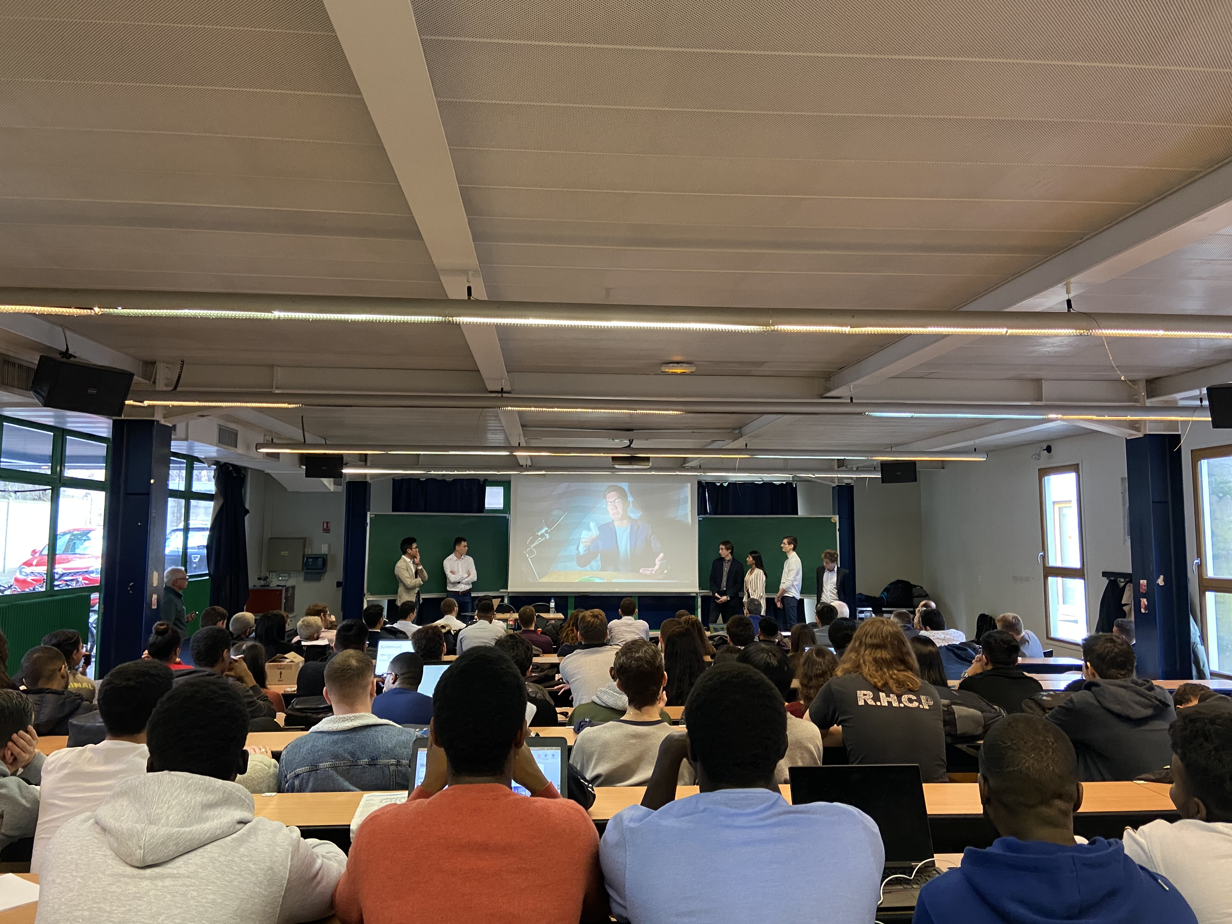 Romain, Corentin et l’ensemble du public étaient également membres du jury. Ils ont pu poser leurs questions afin d’obtenir des éléments de réponse sur des points non développés dans la présentation et de pouvoir mener à bien leur rôle de jury à la fin en évaluant les différents projets.
