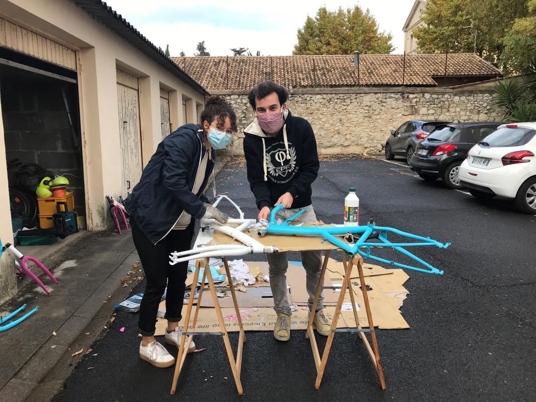- Un atelier d’auto-réparation pour démocratiser l'accès à l'entretien de son vélo auprès des citoyens montpelliérains et des professionnels utilisant leur vélo au quotidien (cyclo-plombiers, coursiers...). Une permanence mécanique vélo est ouverte tous les jeudis après-midi pour les étudiants souhaitant réparer leurs vélos ou se former à la mécanique.