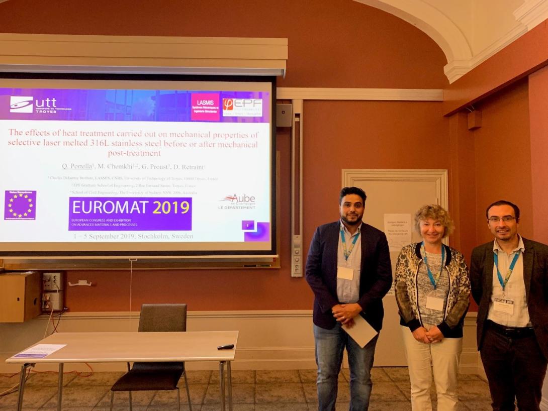À l’occasion de la 16ème édition qui s’est déroulée du 01 au 05 septembre dernier à Stockholm en Suède, Mahdi CHEMKHI, Enseignant chercheur à l’EPF de Troyes, ainsi que son doctorant, Quentin PORTELLA, de l'équipe LASMIS de l'ICD, ont présenté des travaux de recherche sur l’amélioration des propriétés mécaniques des pièces issues de la fabrication additive via différents types de traitement de surface. Mahdi CHEMKHI a été chaleureusement accueilli par Mme Sandrine TESTAZ, attachée de coopération scientifique et universitaire à l’Ambassade de France - Institut français de Suède. Ils ont pu échanger sur les opportunités de coopérations entre la France et la Suède ; notamment sur les différents programmes qui soutiennent la mobilité des chercheurs et des doctorants. Ils ont également évoqué les événements à venir, destinés à densifier les programmes de coopérations pour favoriser la création de doubles diplômes entre la France et la Suède).