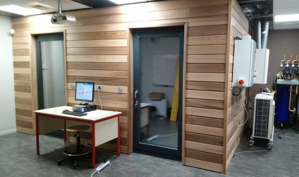 Le réseau hydraulique permettant l’alimentation des différents systèmes de chauffages de la cellule chaude et le réseau aéraulique de la centrale de traitement de l’air ont également été mis en place. La plupart des capteurs sont aussi déjà installés et connectés à la gestion technique centralisée (GTC) adaptée à la plateforme.