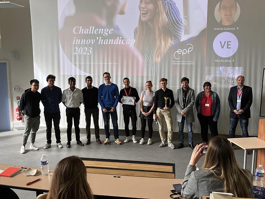 Découvrir leur vidéo. - Le prix des Alumni (cartes cadeaux pour les étudiants) offert par l’association des Alumni de l’EPF pour la vidéo « Mon Challenge Innov’handicap » a été remis à l’équipe.
