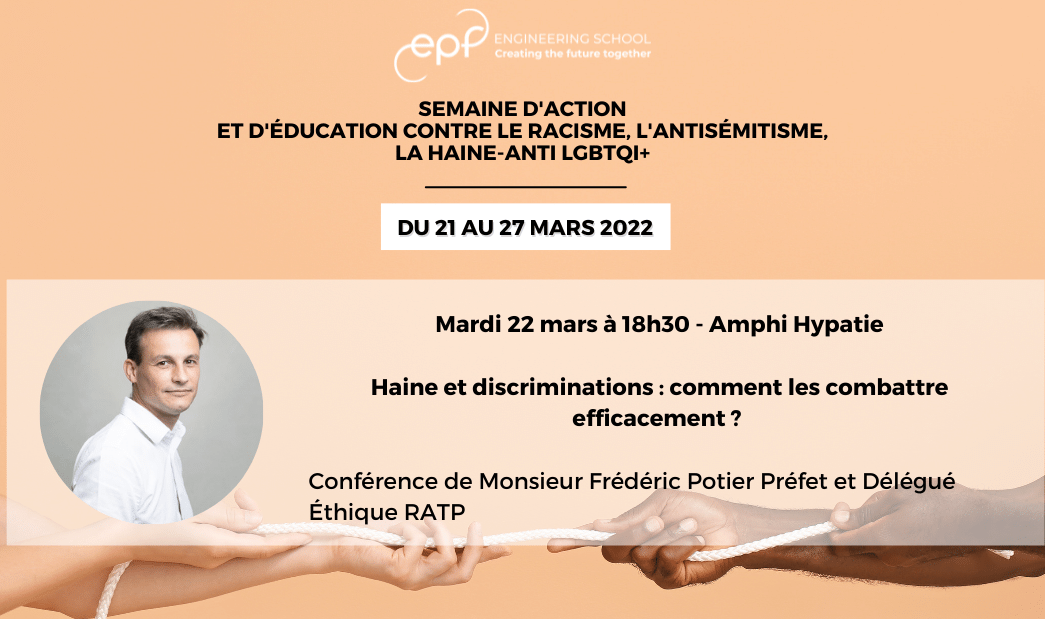 À l’occasion de la semaine d’action et d’éducation contre le racisme, l’antisémitisme, la haine-anti LGBTQI+, nous avons eu l’honneur d’accueillir Frédéric Potier, Préfet, délégué à l’éthique à la RATP sur le campus de Paris-Cachan.