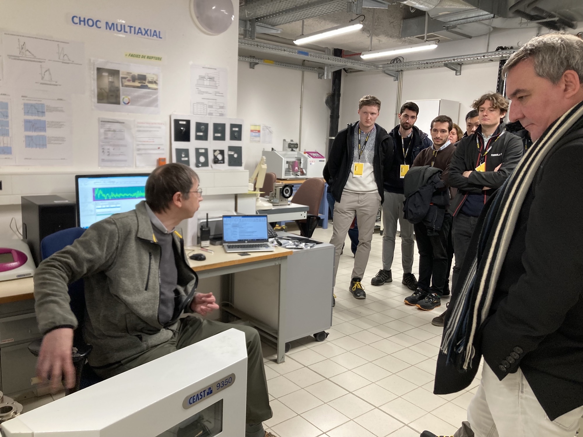 Lors de cette visite, les 12 étudiants ont eu l’occasion de visiter les laboratoires matériaux au sein du Technocentre et ont pu en savoir davantage sur l’analyse par Microscope Électronique à Balayage (MEB), découvrir le labo de lutte de la corrosion des pièces métalliques, voir des essais de caractérisation à l'impact et des essais "catapulte" pour tester des structures polymères par exemple. Ces essais font directement écho aux enseignements dispensés dans la majeure autour de la santé matière, du dimensionnement et de la famille des matériaux polymères et leurs usages dans le monde du transport.
