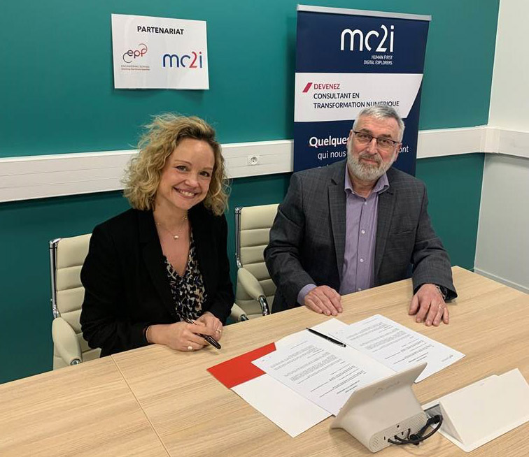 Depuis plusieurs années, l’EPF et MC2i (cabinet de conseil en transformation numérique) entretiennent une relation de confiance, et c’est dans ce cadre qu’une nouvelle convention a été signée lundi 13 février dernier, sur le campus EPF de Paris-Cachan en la présence d’Emmylou Roszak, Senior Partner, Directrice de l’offre d’expertise « Énergies » chez MC2i, et d’Éric Savattero Directeur des formations de l’EPF.