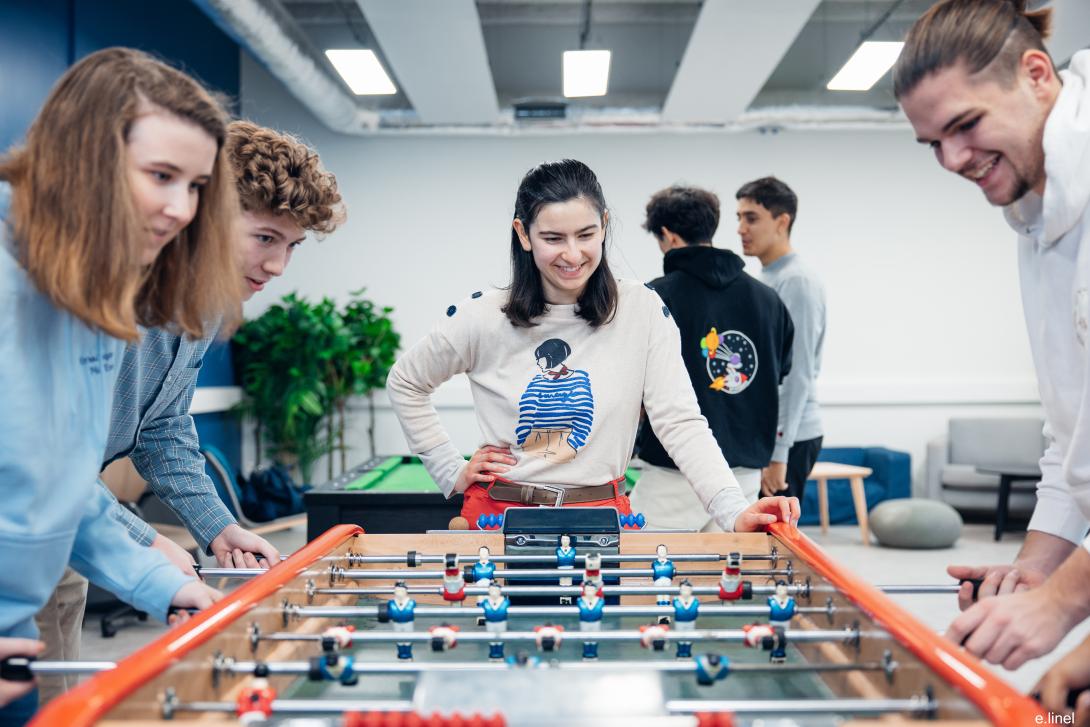 Pour les projets de groupe, le campus est équipé de salles de projet, de différents espaces d'études et d'espaces partagés avec salle de visioconférence.